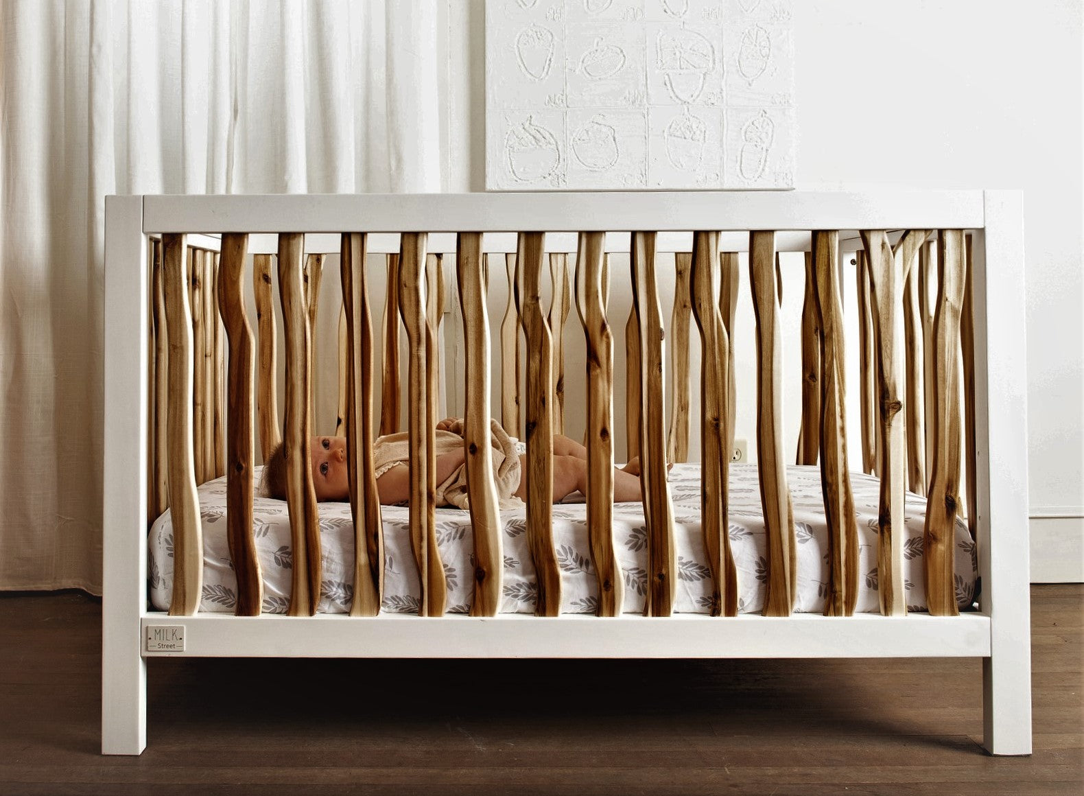 Branch styled slats make Milk Street Baby's Branch crib one of the most unique and stylish cribs available. The exotic nature of the branch spindles creates a wondrous world of nature reflected in form and function. The patented and trademarked design exhibits exceptional engineering and craftsmanship with each branch spindle fitting perfectly with the next to meet or exceed all ASTM, USPC protocols, compliance and safety standards; an engineering feat to say the least. Never before has this been achieved for baby!