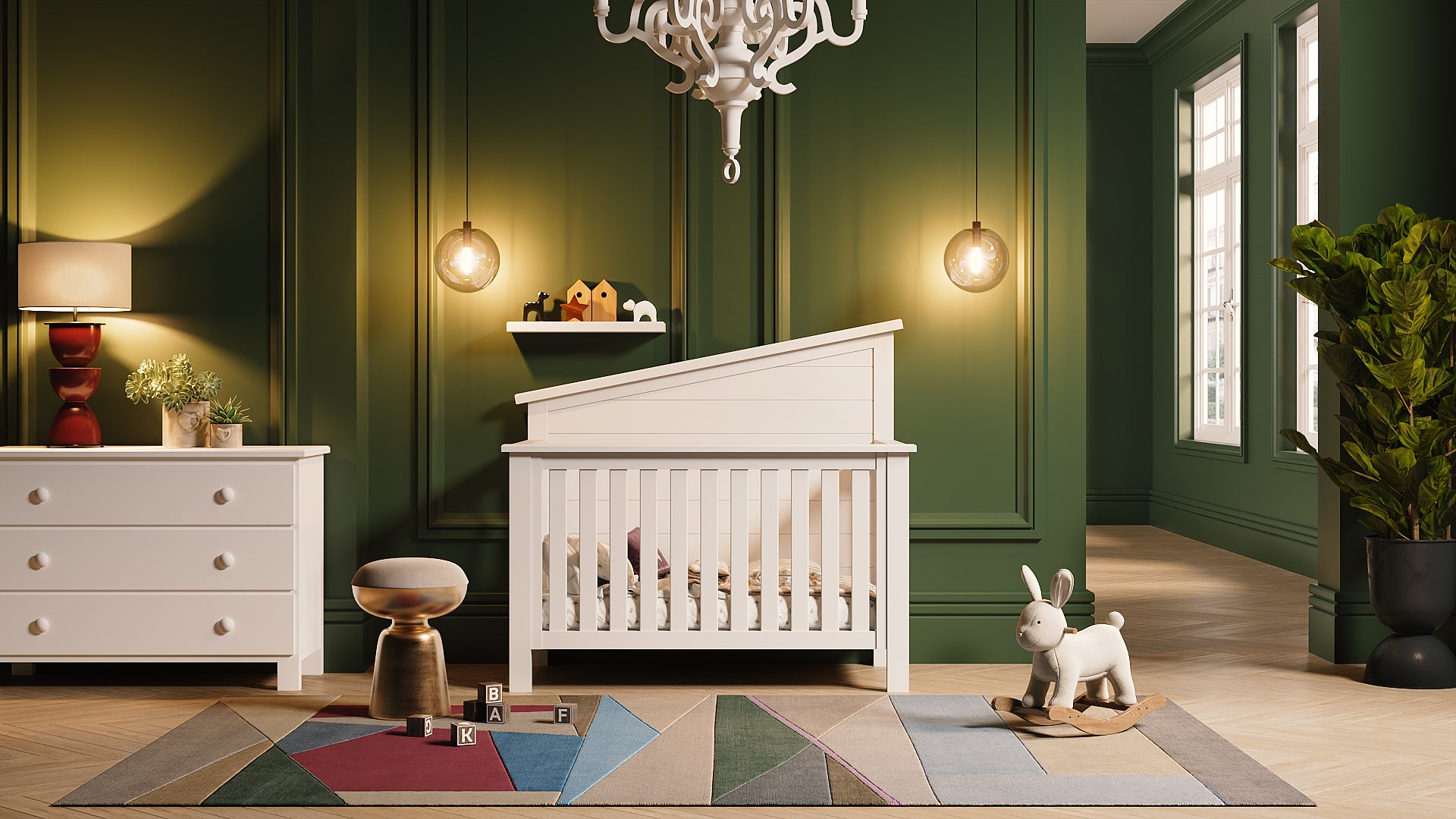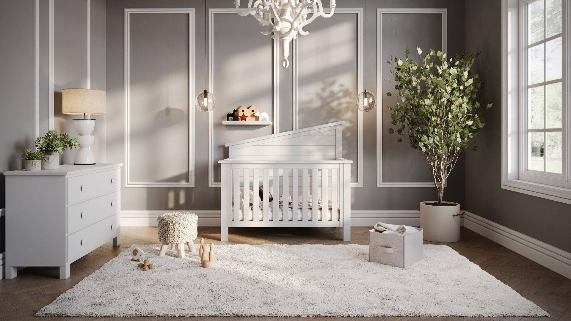 As we researched and thought about Nursery furnishings, we focused upon what has not been done well-the white crib. Cribs on the market in just white have not changed in decades. White = Dated. We are out to change that! In speaking with many top trending designers, we were validated … the tones and textures being used in the most gorgeous nursery spaces utilize accent pieces to add pops of color! Add color through objects, wall art, bedding, lamps, or rugs. Add on walls through texture, carefully curated paint colors, or wallpaper. We want you to design around our furniture. The cribs in the “Just White” collection focus on forms; architectural moldings and profiles curated to fit in perfectly with the hottest current trending styles for baby and child in 2025-2026. As always, Milk Street Baby designs like no one else can.