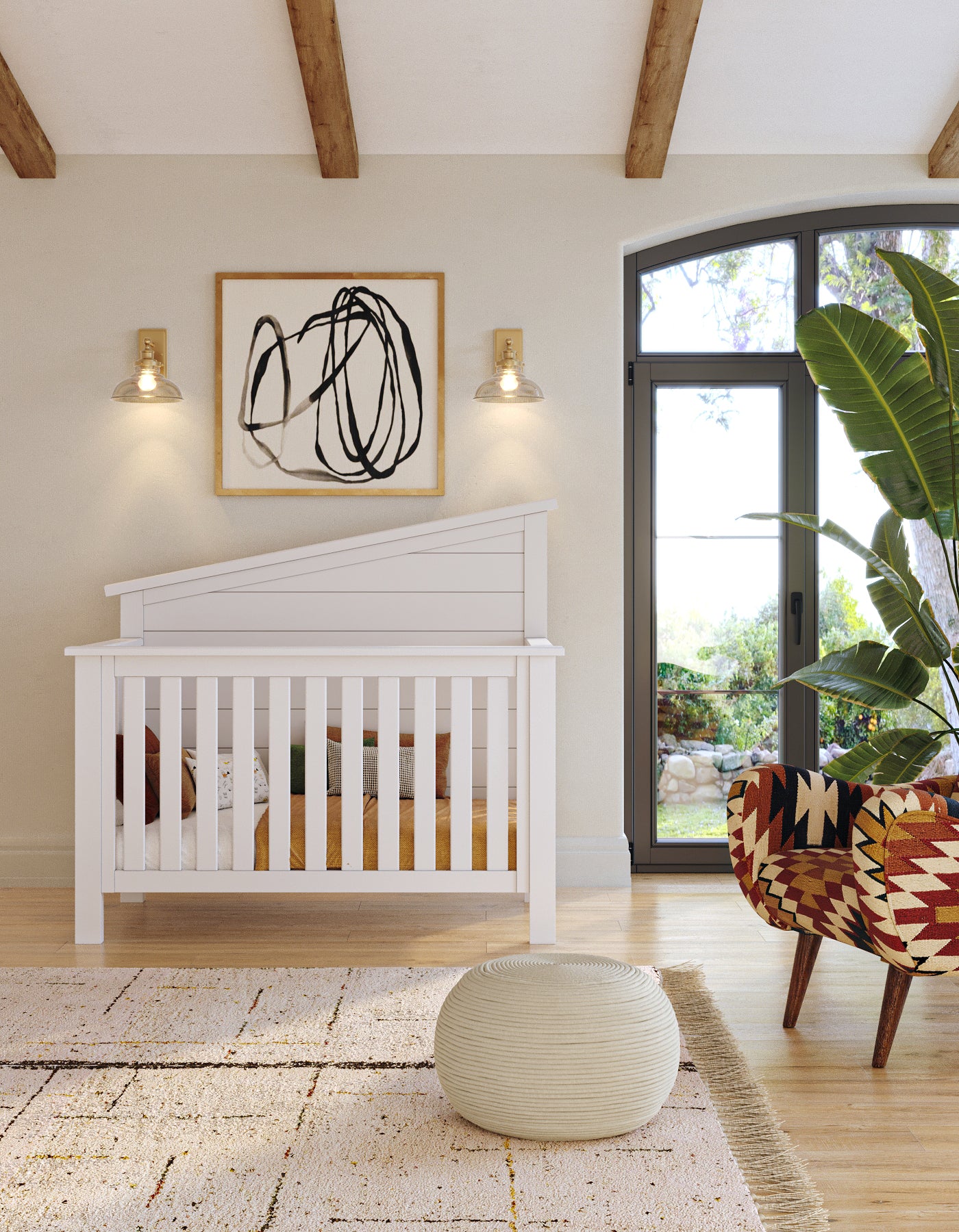 The Balanced Baby Crib With Tot Bed Conversion from our "just white" collection is unlike anything ever built for baby. Essentially, this crib offers a thoughtful blend of styles, presenting a fresh and inviting aesthetic that is both modern and timeless. Contrasting yet complementary details: The angled back creates a striking silhouette, adding a touch of contemporary flair, while the bead board detailing provides a subtle texture and visual interest rooted in tradition.