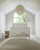 The Geometric Crib With Tot Bed Conversion from our "just white" collection offers contemporary, minimal lines with a touch of abstract versatility. This crib is sleek, clean, and minimalist, yet visually engaging and dynamic. Geometric shapes and patterns add an artistic element to the overall design, creating visual impact.