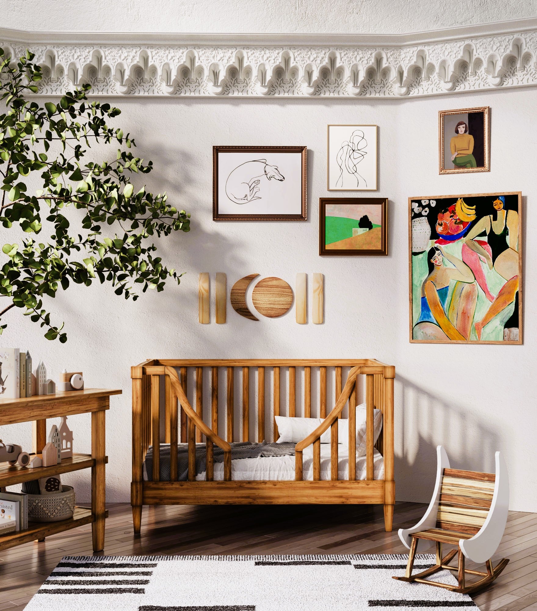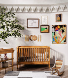 Available in one natural finish: Grade A Solid Acacia hardwood finished with a soft clear coat to enhance the wood grain. All Milk Street Baby products are finished using only Greenguard Gold certified paints and stains.