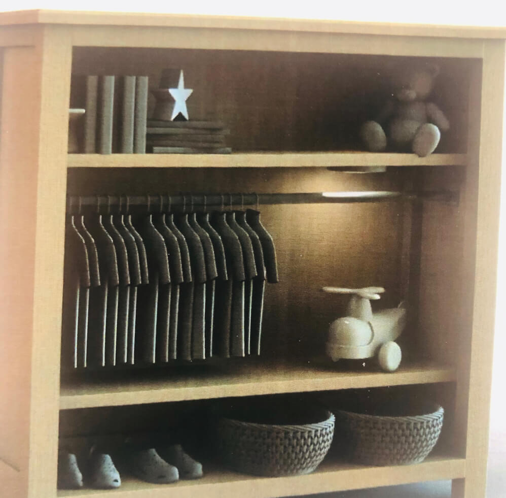 Milk Street thinks about the details that make people smile. Those details, such as a set of rechargeable lights on the hutch/bookcase, are another unique way to configure your furniture to suit your needs. Who else offers shelving, nightlights, and a clothing rod as standard features? We want you to have full design flexibility! Create a "Pinterest worthy," open armoire/storage piece that speaks to your child. Not only do we think of those first days home and offer features of convenience, we think long term, giving you collections that grow with your family.