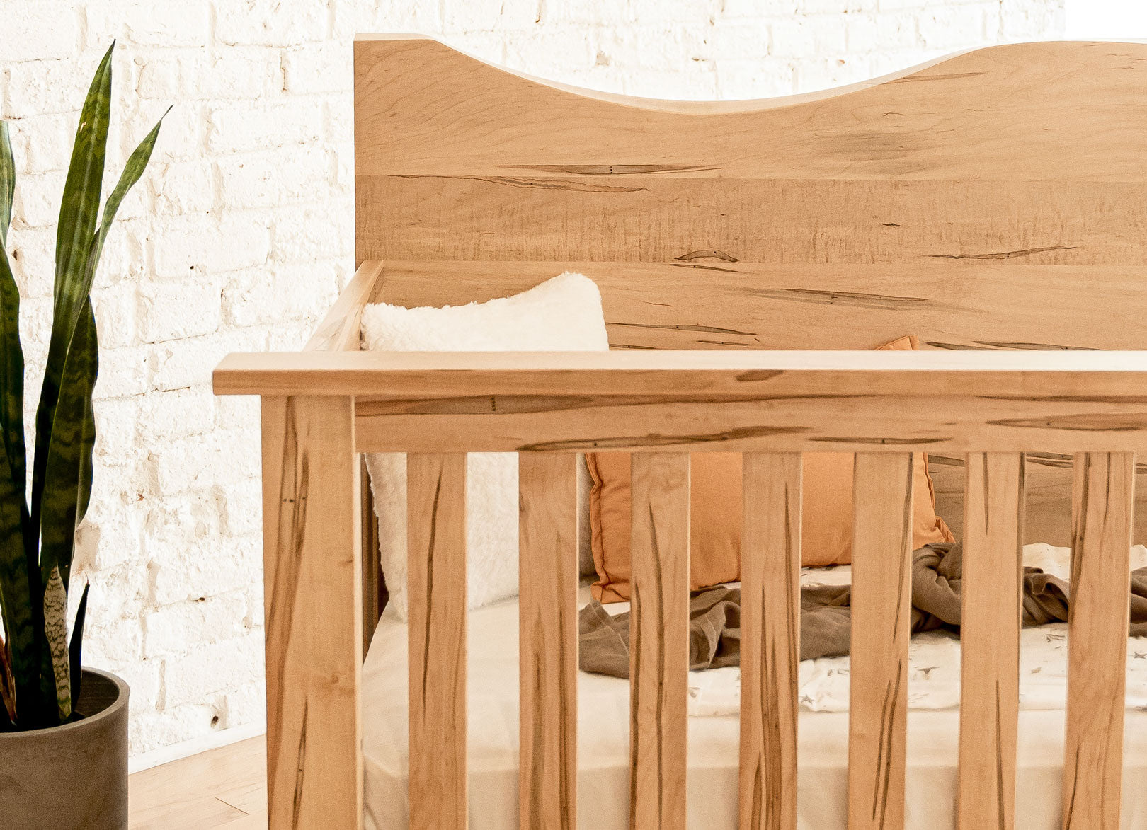Furniture arrives at their shop as raw wood, where it’s sanded, finished, inspected, and blanket-wrapped for direct shipment to businesses and homes across the country. Milk Street Baby offers four hardwood species and two tiers of finish, across a palette of 16 colors, each priced accordingly. Wood species we offer include wormy maple, aspen, sap cherry, and brown maple. Other hardwoods can be customer ordered.