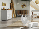 For all Milk Street Baby Furniture you can clean by using only mild household soap and warm water. Do not use bleach or detergent or abrasive cleaners.