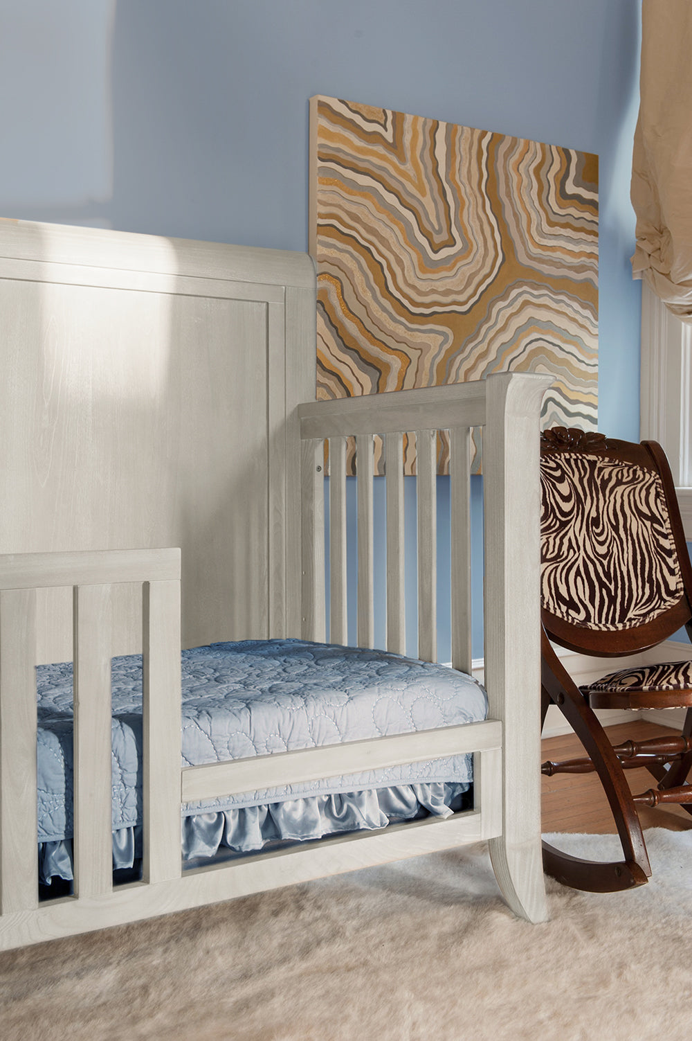 Our Cameo Sleigh Crib Toddler Conversion kit converts your crib with ease! The Cameo Collection offers a new twist on a timeless design and carries that off beautifully in our Cameo Toddler Sleigh bed. We sandblast heavily to offer a buttery, well-worn look and feel like no other nursery furniture on the market. Transitional. Gender neutral. Truly nothing looks quite like a Milk Street nursery. The conversion kit is finished and constructed with that same Milk Street quality we are famous for.  From modern to traditional tastes, our cribs make gorgeous beds that work anywhere! Please note that this item is specific to the crib you have purchased.